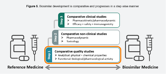 Figure 3. Biosimilar Development is comparative and progresses in a step-wise manner (reproduced based on original figure published by EMA)2