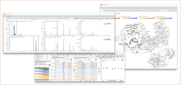 Figure 5. Snippets of result visualization after analytical data processing acquired for an IgG1 mAb