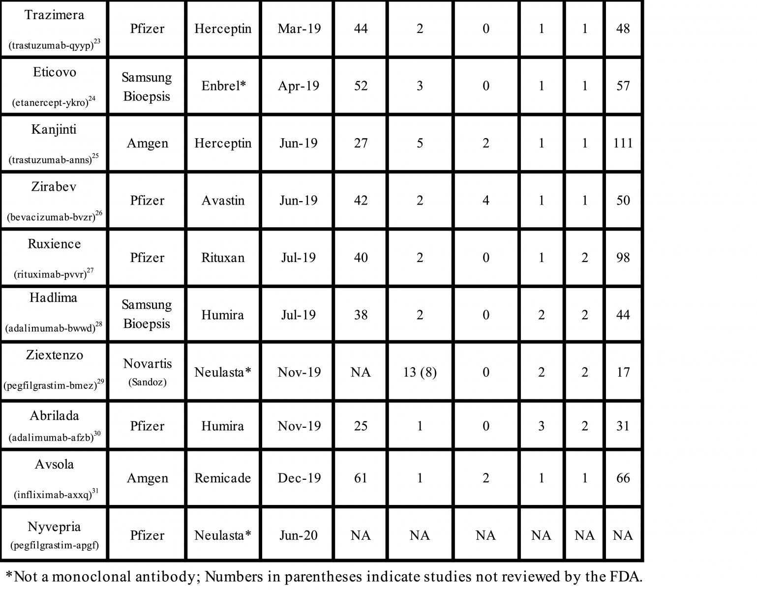 The FDA has long emphasized a stepwise approach to the development of biosimilars, and the stereotypical pyramid showing the importance of various studies has been circulated ad infinitum. The analytical similarity testing is the largest component and clinical efficacy, the smallest piece of the pyramid. However, the developers, all of them being large pharmaceutical companies with 1 exception, decided to conduct extensive, costly clinical efficacy testing; Coherus BioSciences, the exception, received approval without submitting a clinical efficacy study.