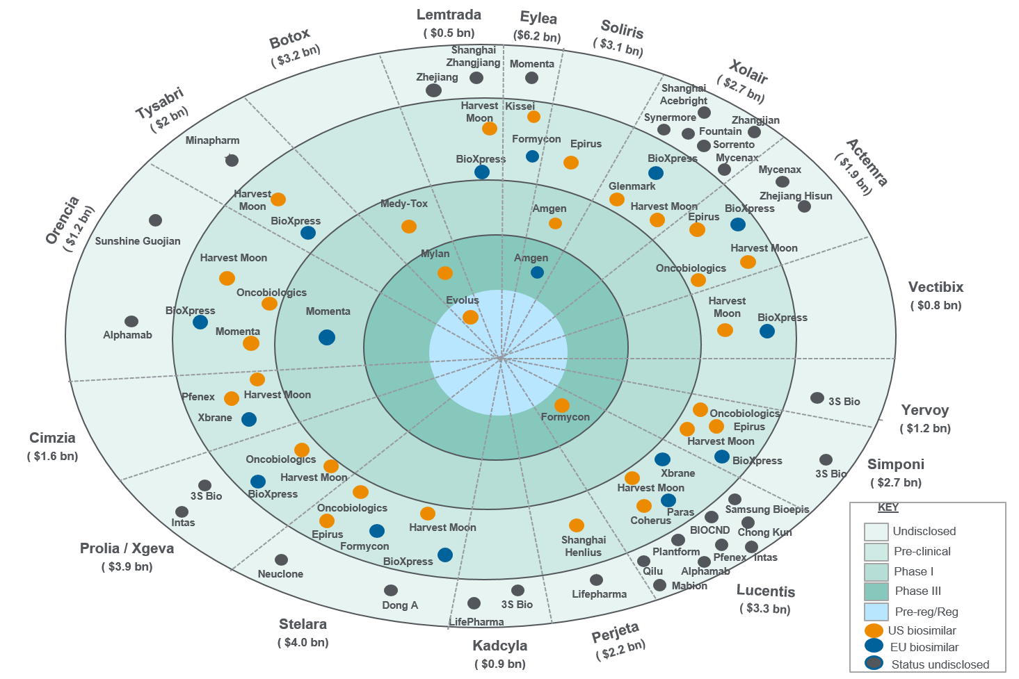 Manufactures that are experienced with biosimilar competition include the following, for a total revenue at risk, based on 2017 sales, of $22 billion: