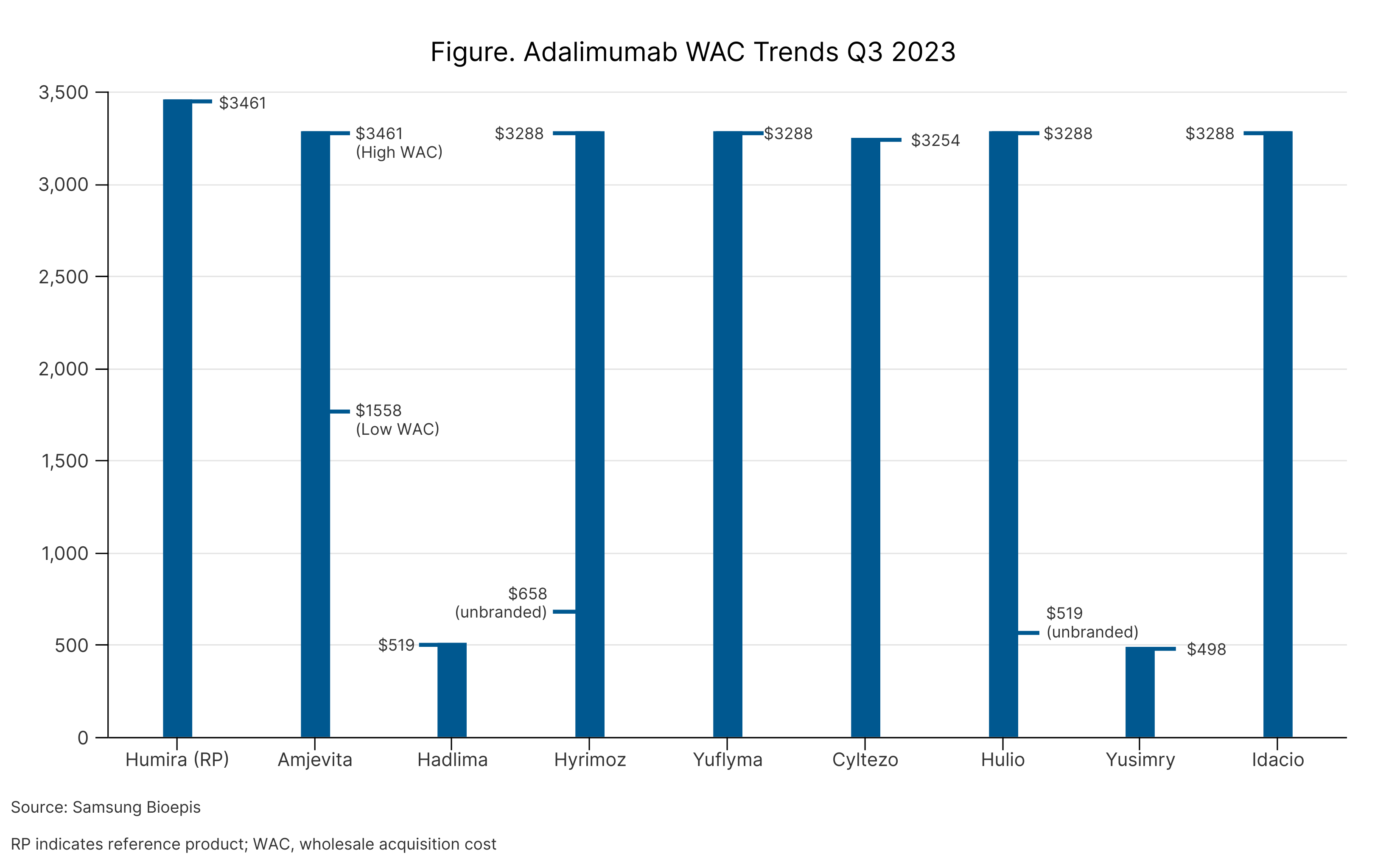 Adalimumab products are tumor necrosis factor-⍺ inhibitors used to treat several rheumatic and gastroenterology conditions, including RA, psoriatic arthritis, juvenile idiopathic arthritis, Crohn disease, ulcerative colitis, ankylosing spondylitis, and plaque psoriasis.