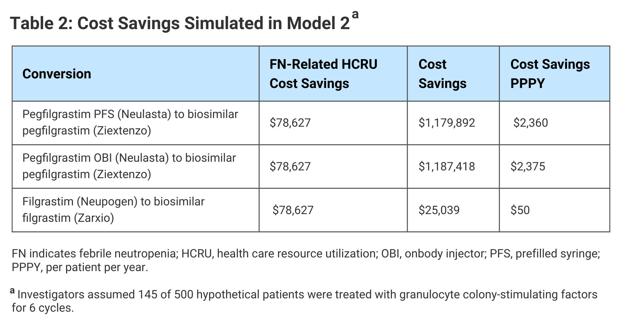 “Conversion to biosimilar G-CSFs would allow more patients at intermediate risk of FN to be treated with prophylactic biosimilar G-CSF, with fewer patients experiencing FN events and still generating savings to the practices and health care system,” they said.