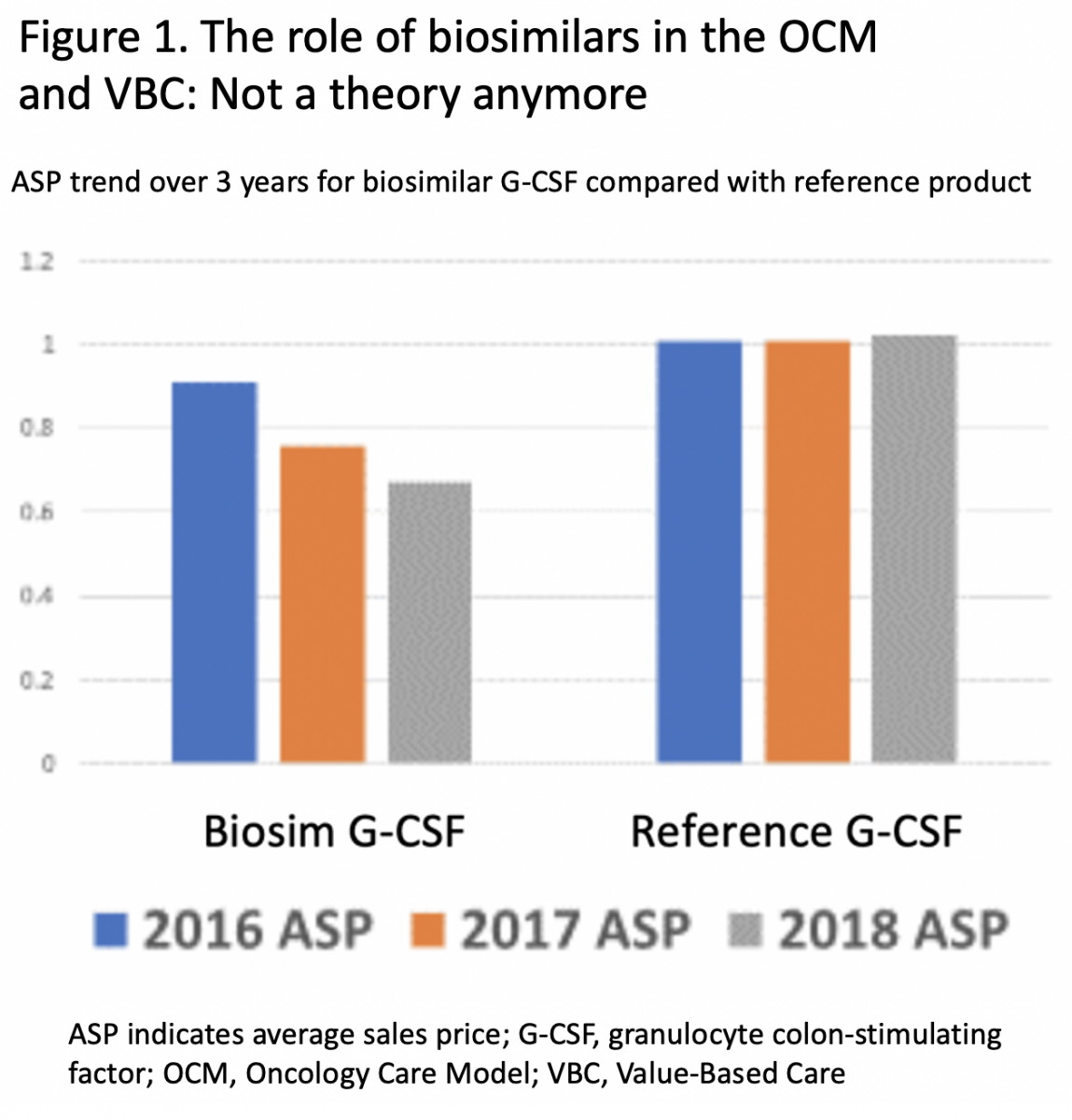 Similar results have been demonstrated across The US Oncology Network, a network of more than 1350 independent physicians who deliver value-based cancer care in the community setting. The ASP trend for G-CSF biosimilars over a 3-year period clearly shows substantial cost savings compared with the reference product, based on CMS data for the Oncology Care Model (Figure 1).