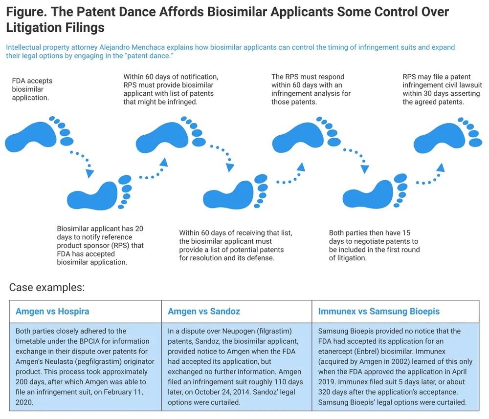 Currently, the patent dance is a required part of the biosimilar approval pathway and involves an exchange of information regarding patents, infringement, and validity positions (Figure). This early assessment, often initiated even before any litigation is filed, allows the involved parties to pinpoint and discuss specific patents that might be contested, facilitating earlier settlement discussions and minimizing the scope of costly litigation.