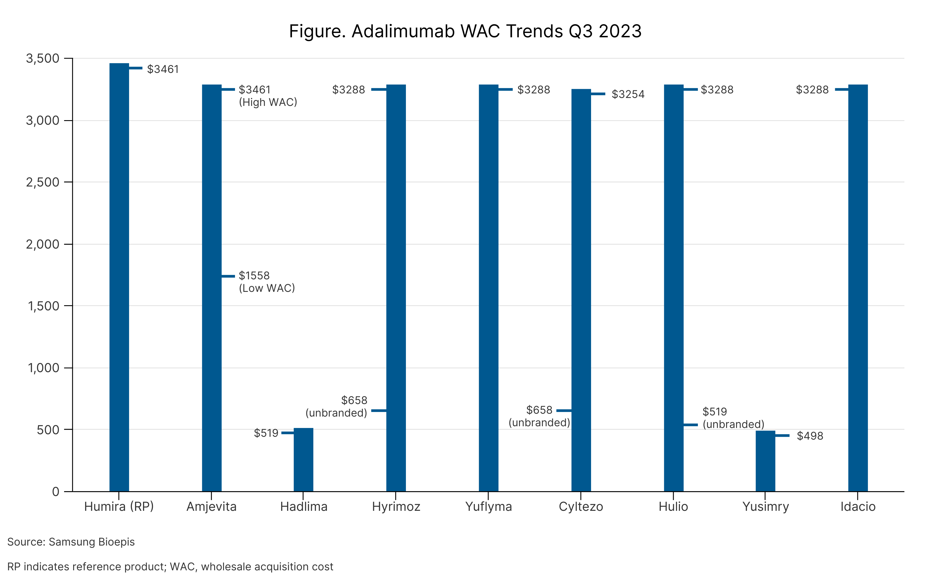 Many companies have chosen a dual-pricing strategy for their adalimumab biosimilars, either launching their product at 2 wholesale acquisition costs (WACs) or launching branded and unbranded versions at 2 different price points. (Figure)