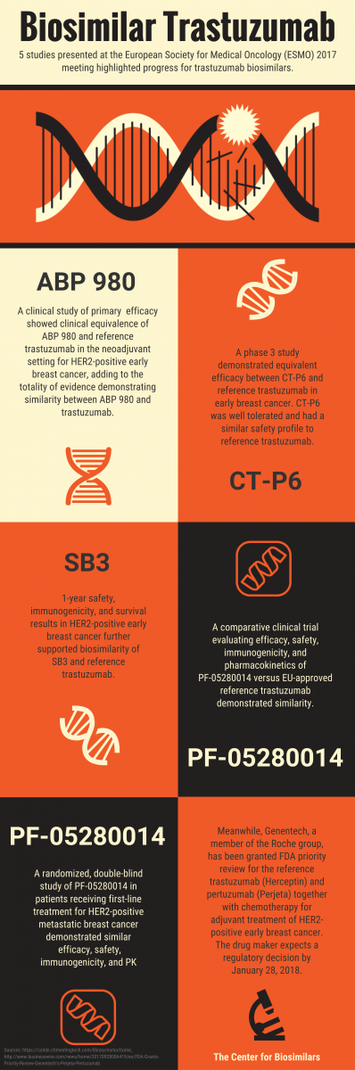 Data from 5 studies presented at the European Society for Medical Oncology (ESMO) 2017 meeting highlighted the progress of biosimilar trastuzumab candidates.
