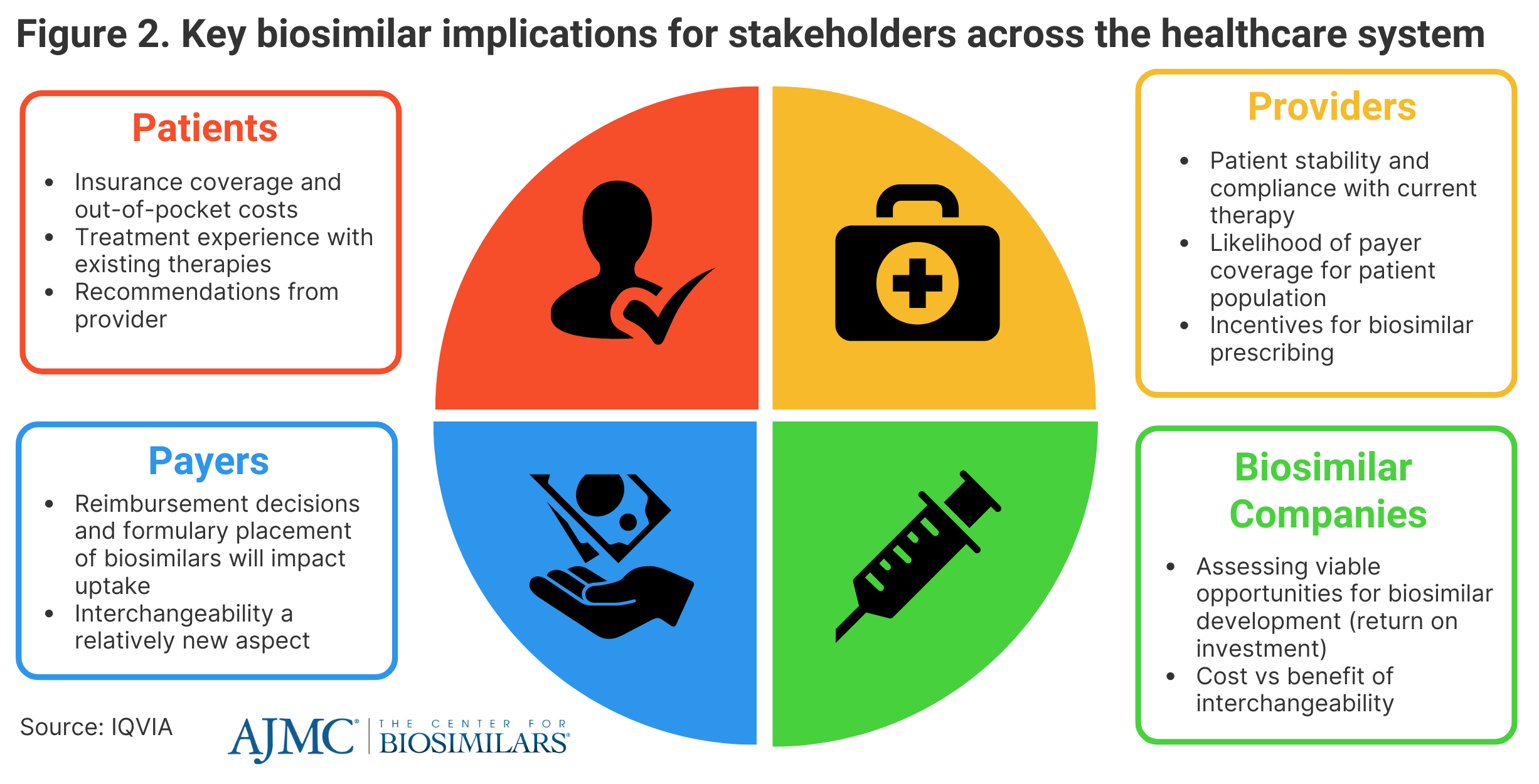 IQVIA said that biosimilars will continue to have an impact on all aspects of the health care system, saying that patients are going to be heavily influenced by coverage options for biosimilars and any out-of-pocket expenses they may face (Figure 2).
