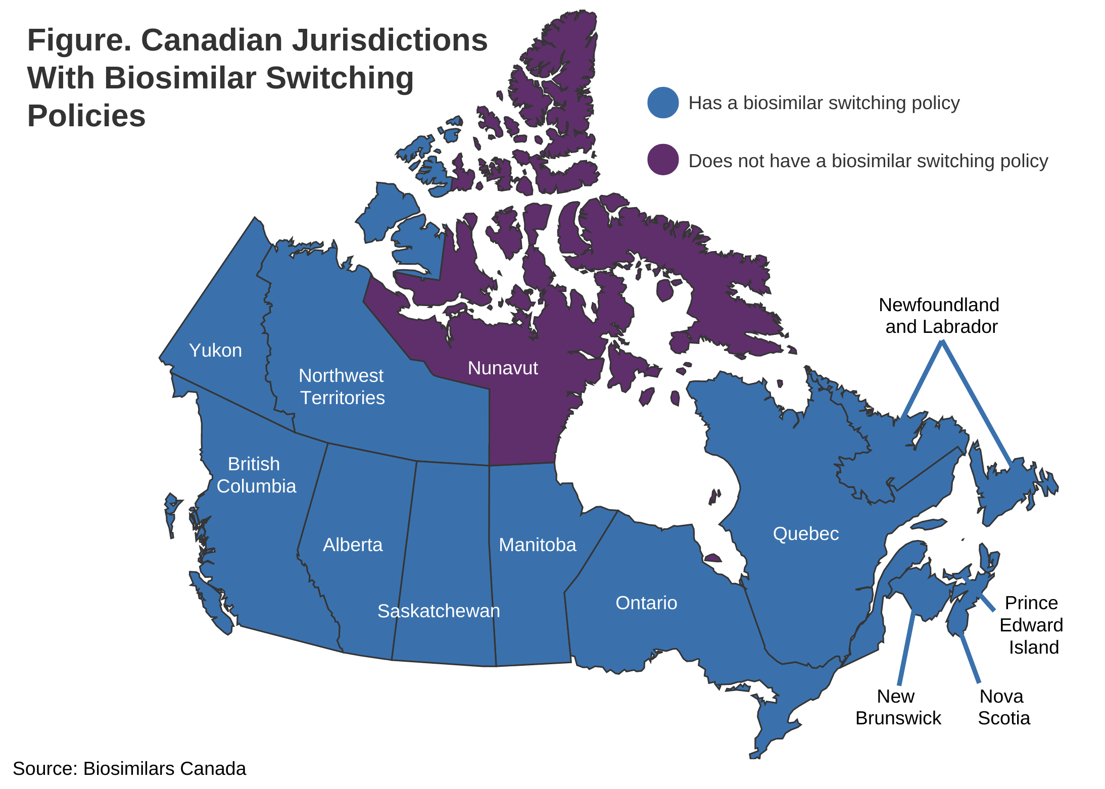 Of the 13 jurisdictions in Canada, 12 now have biosimilar switching policies. Nunavut, which has a mostly indigenous population and is the least populated jurisdiction, is the only one remaining.