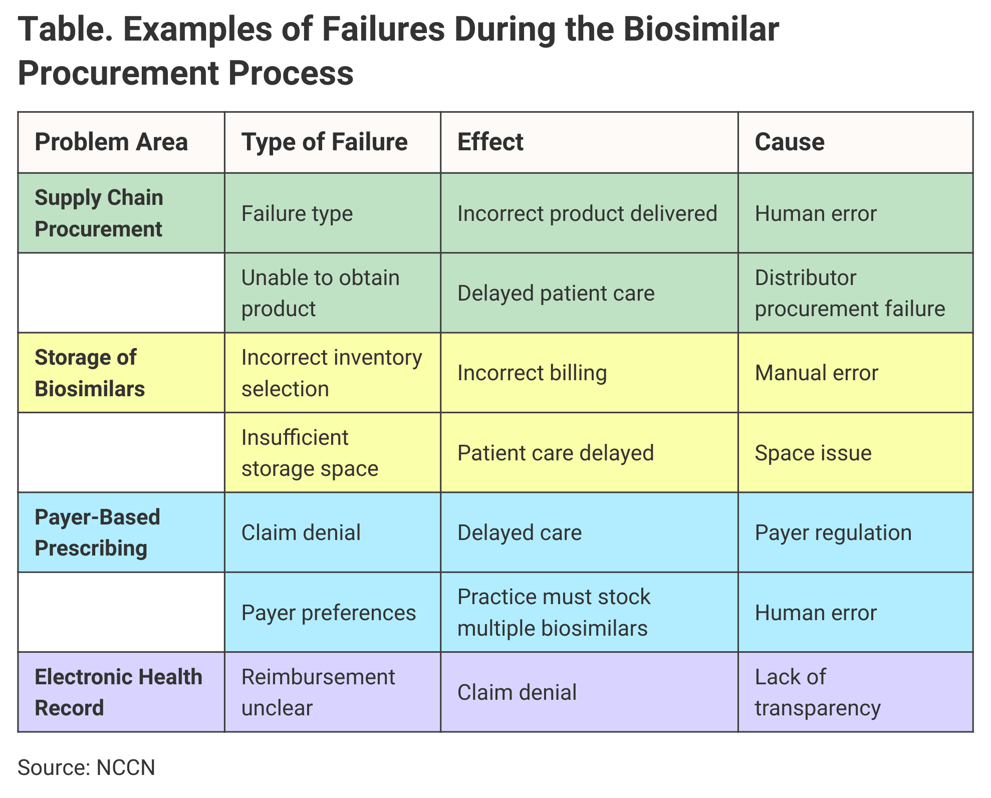 Human error during the biosimilar procurement process is another challenge for practices, and the NCCN paper identified numerous other potential breakdowns and their effects on clinical efficiency (Table).